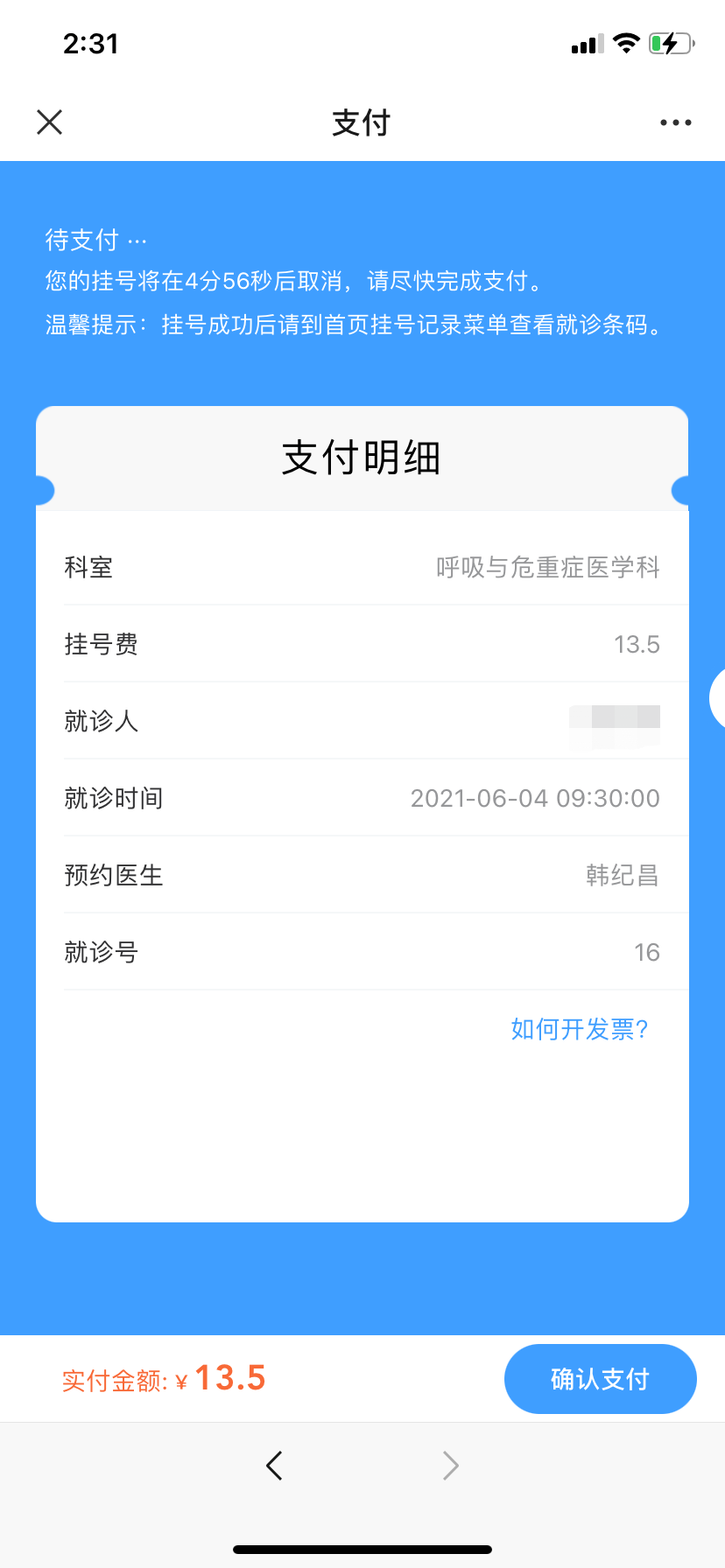 确认【挂号信息】