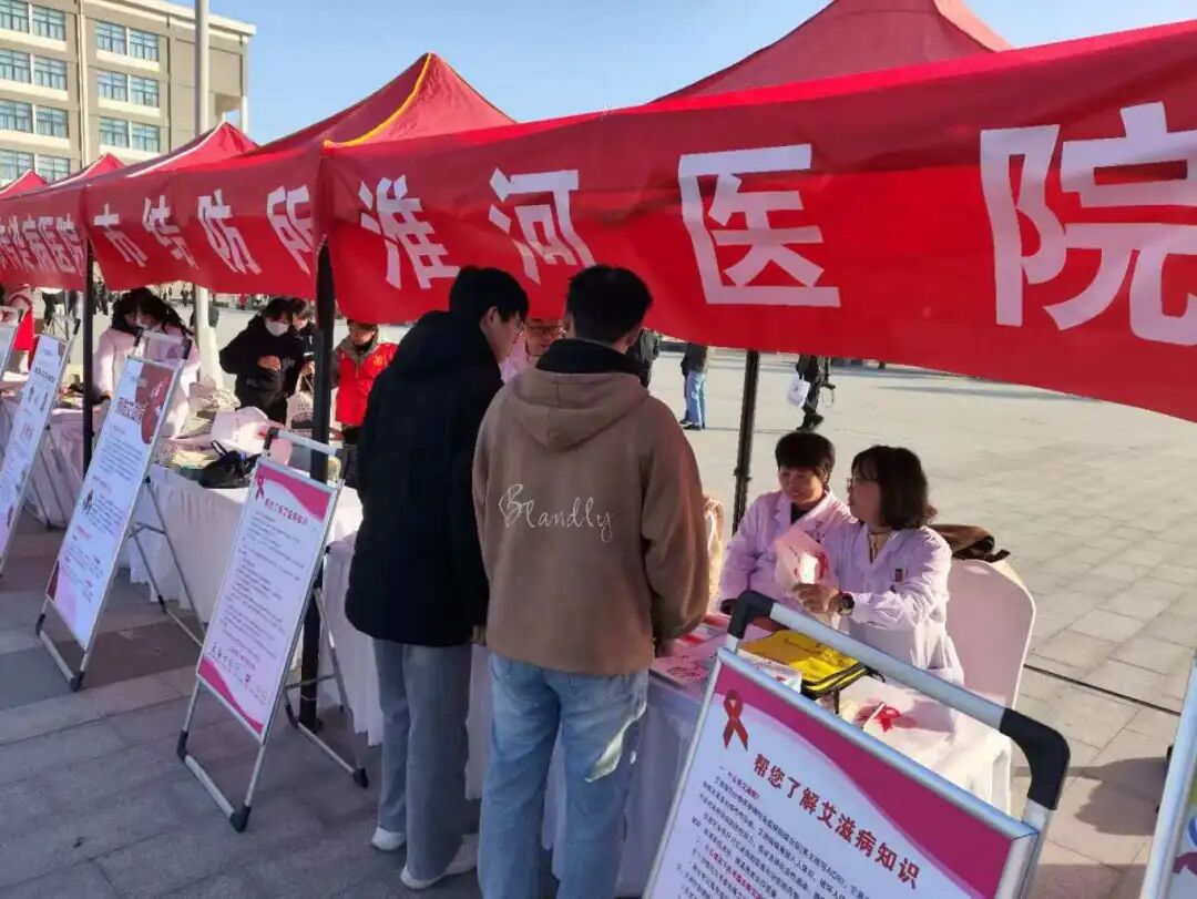 在“世界艾滋病日”主题活动现场,淮河医院联合多部门共同参与了活动启动仪式。现场摆放了科普展架,医院组建的医疗团队为到场群众提供一对一健康咨询服务,针对艾滋病传播途径、检测方式等公众关心的常见问题进行详细解答,起到了良好的宣传效果。