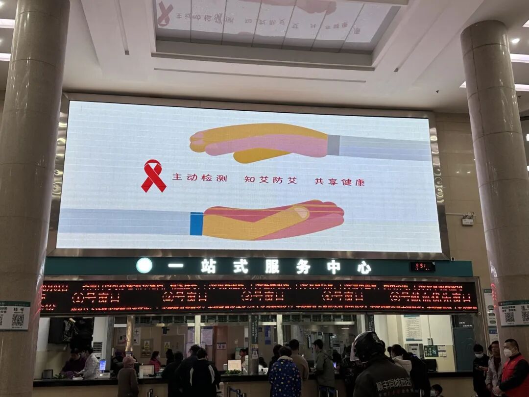 当天,医院各区域电子屏滚动播放“世界艾滋病日”主题标语与防治知识,从门诊大厅到各科室区域,宣传内容覆盖就诊与工作全场景,让患者与职工在日常场景中便捷获取健康知识。