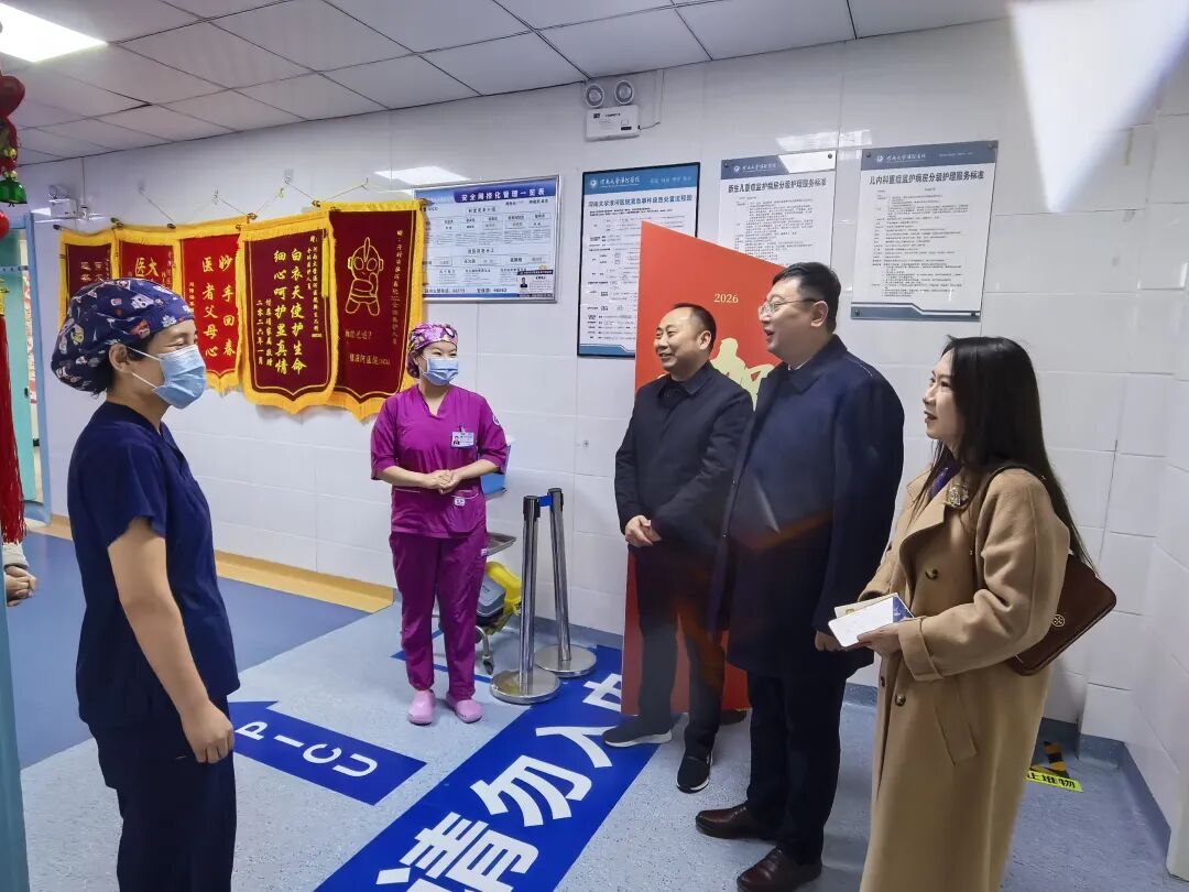 新春慰问中,院领导每到一处,都与一线工作人员亲切交谈,互道新年祝福,详细了解节日期间的值班排班情况、医疗安全、后勤服务保障及患者诊疗康复情况,反复叮嘱值守人员,春节期间更要坚守医者初心,以高度的责任心和专业的医疗素养,严格落实各项医疗核心制度,精益求精提升医疗服务质量,用心用情做好患者诊疗与照护,全力保障每一位在院患者都能度过一个平安、祥和、温暖的新春佳节。