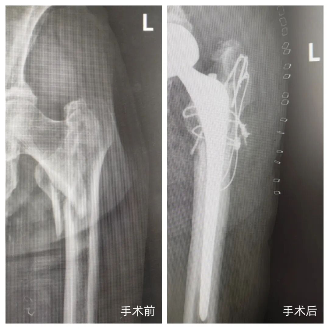 手术由张松主任医师主刀,朱明洋主治医师协助完成。麻醉科李爱香主任团队为患者提供了精准的麻醉管理。医疗团队为患者实施了“左侧人工股骨头置换术+粗隆间骨折髓内针线缆张力带内固术”,手术过程顺利,用较短时间便顺利完成,大幅减少了手术创伤。