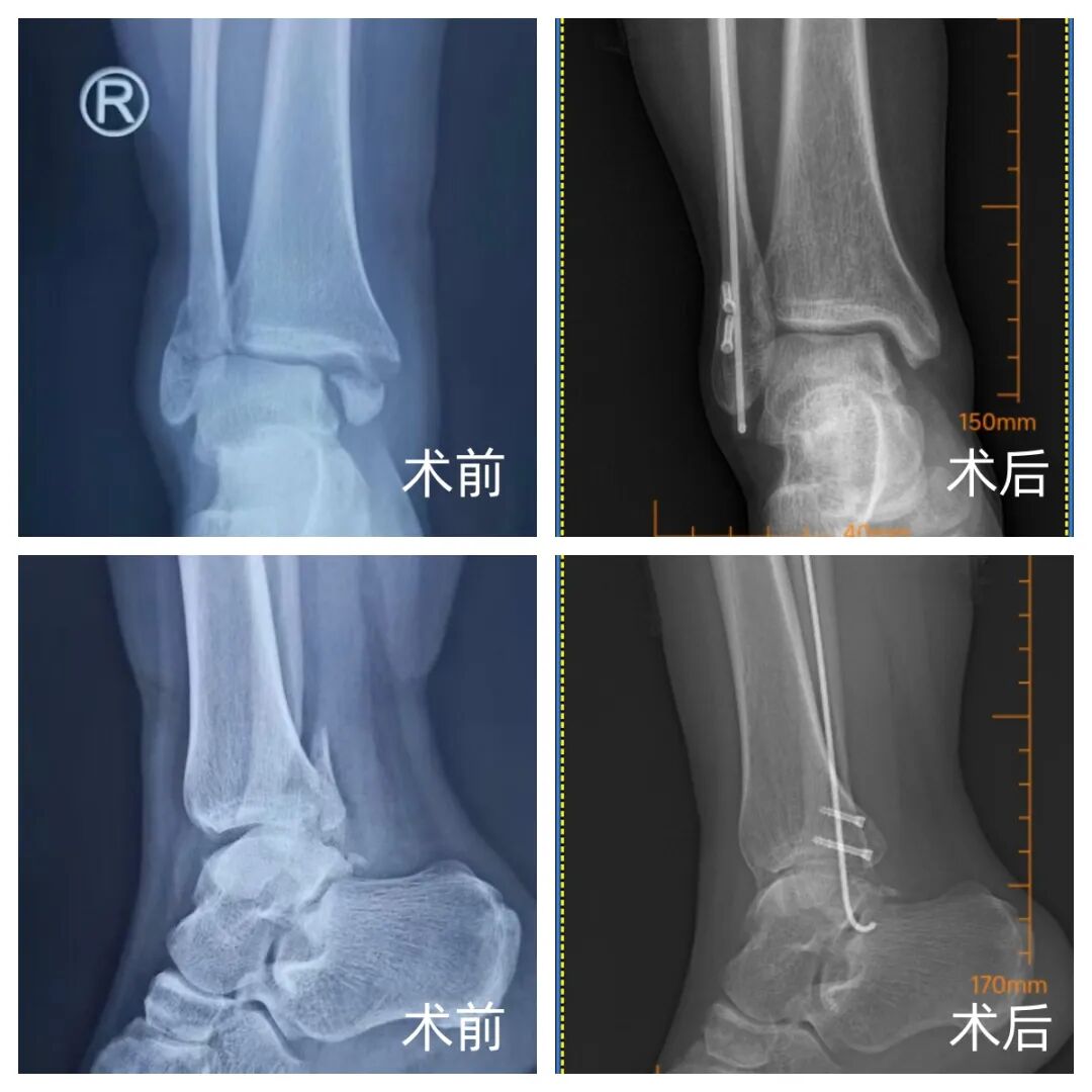 针对上述问题,我院郭建阔主任团队采用弹性髓内针纵向髓内固定联合 Herbert 螺钉固定骨折断端的改良术式。该术式旨在最大限度恢复踝关节解剖结构与维持关节面平整,同时减少传统切开复位对软组织的干扰,为外踝骨折的手术固定提供了一种新的选择。